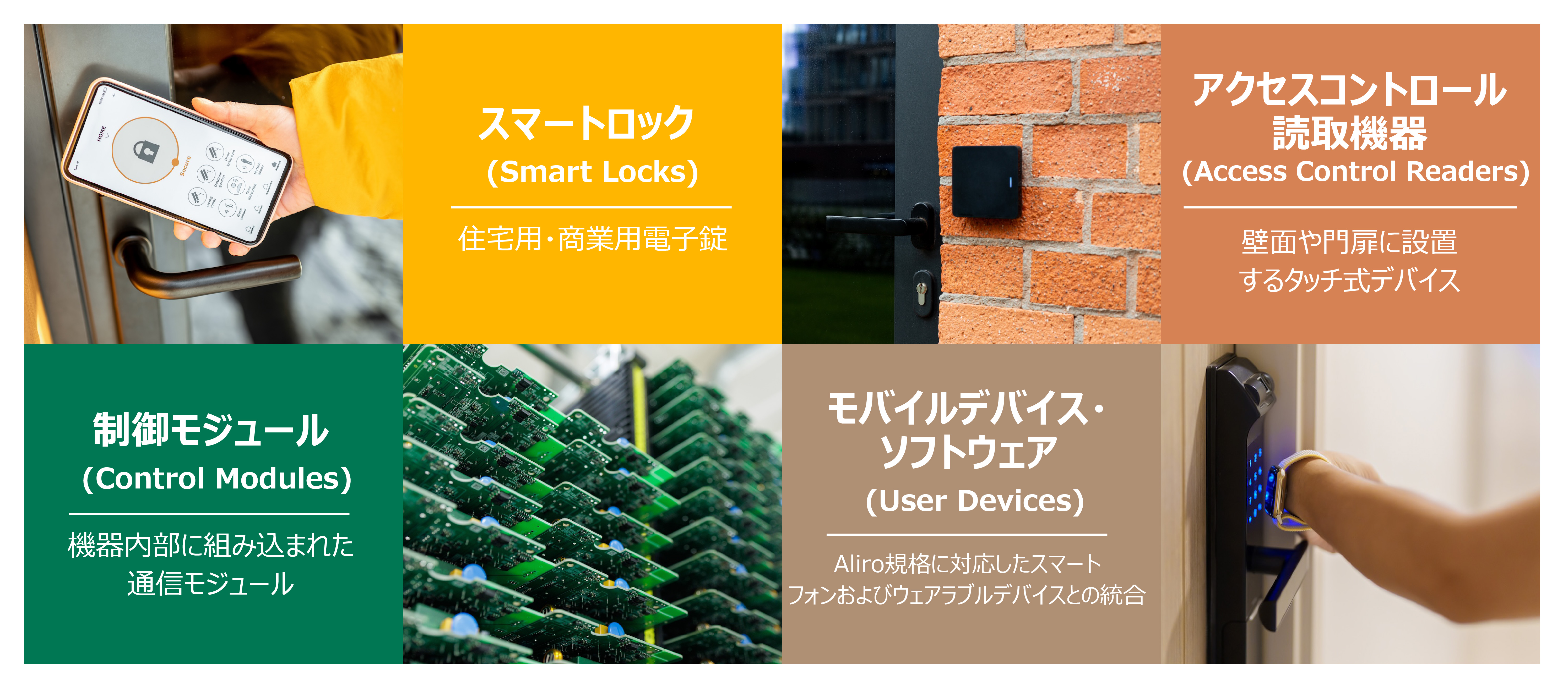 当社は、以下の製品カテゴリーを対象に、Aliroの事前テストおよび認証試験サービスを包括的に提供しています。
