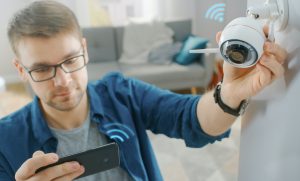 Young,Man,In,Glasses,Wearing,A,Blue,Shirt,Is,Adjusting Published 2023-05-15 at 862 × 521 in Young,Man,In,Glasses,Wearing,A,Blue,Shirt,Is,Adjusting Young Man in Glasses Wearing a Blue Shirt is Adjusting a Modern Wi-Fi Surveillance Camera with Two Antennas on a White Wall at Home. He’s Checking the Video Feed on his Smartphone. ← Previous Next →